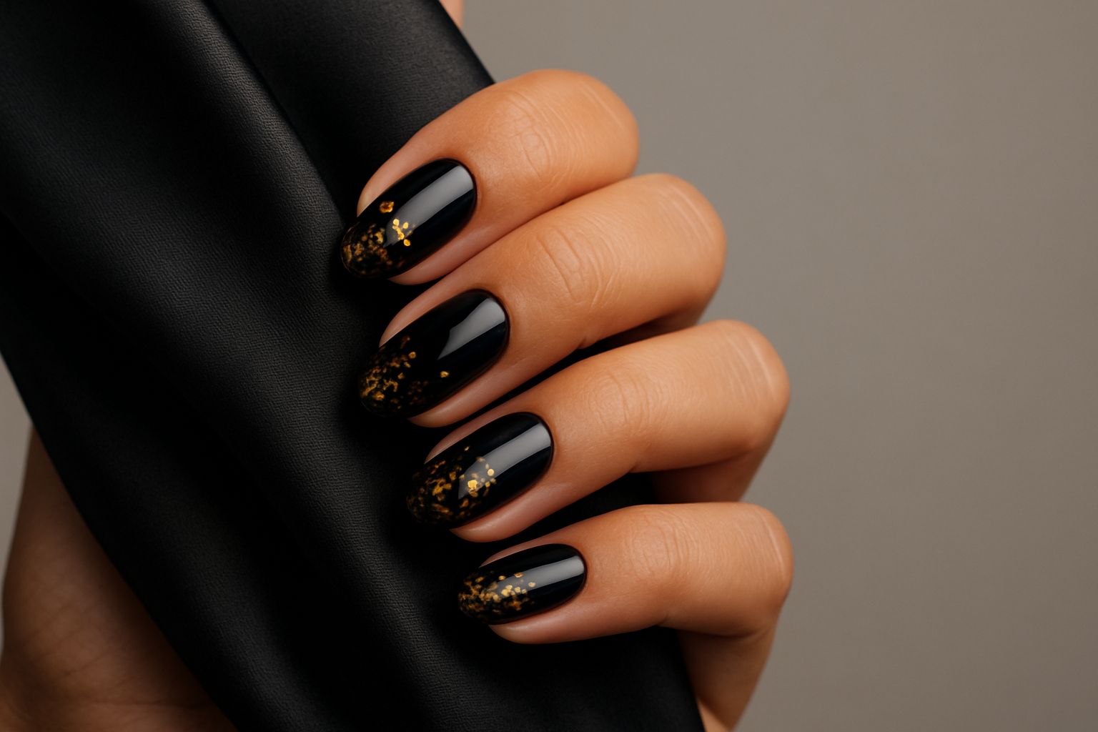 Classy, not spooky: glossy black with gold foil glam. ✨🖤