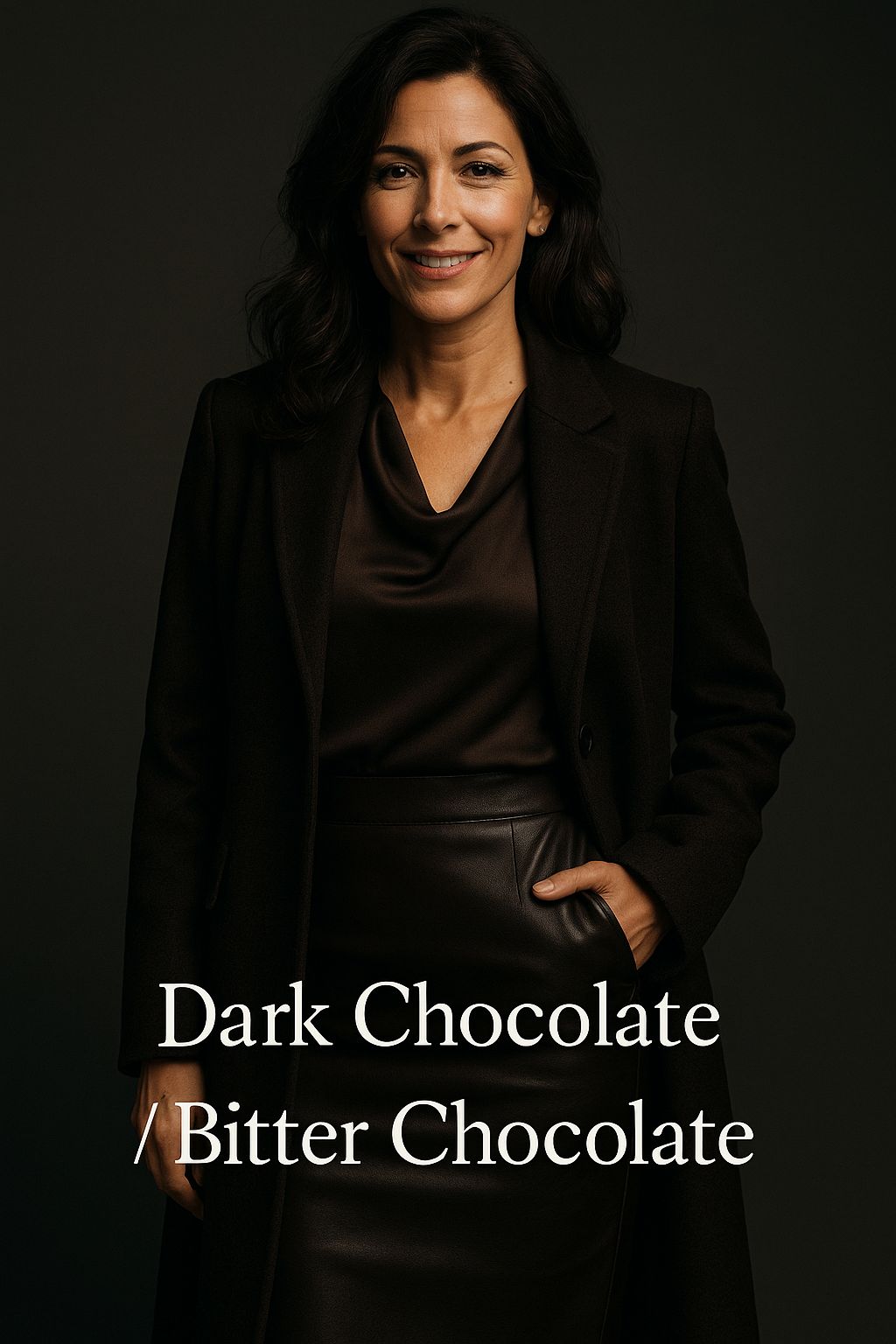 Nearly black with a gourmet twist; softer than black, equally slimming.