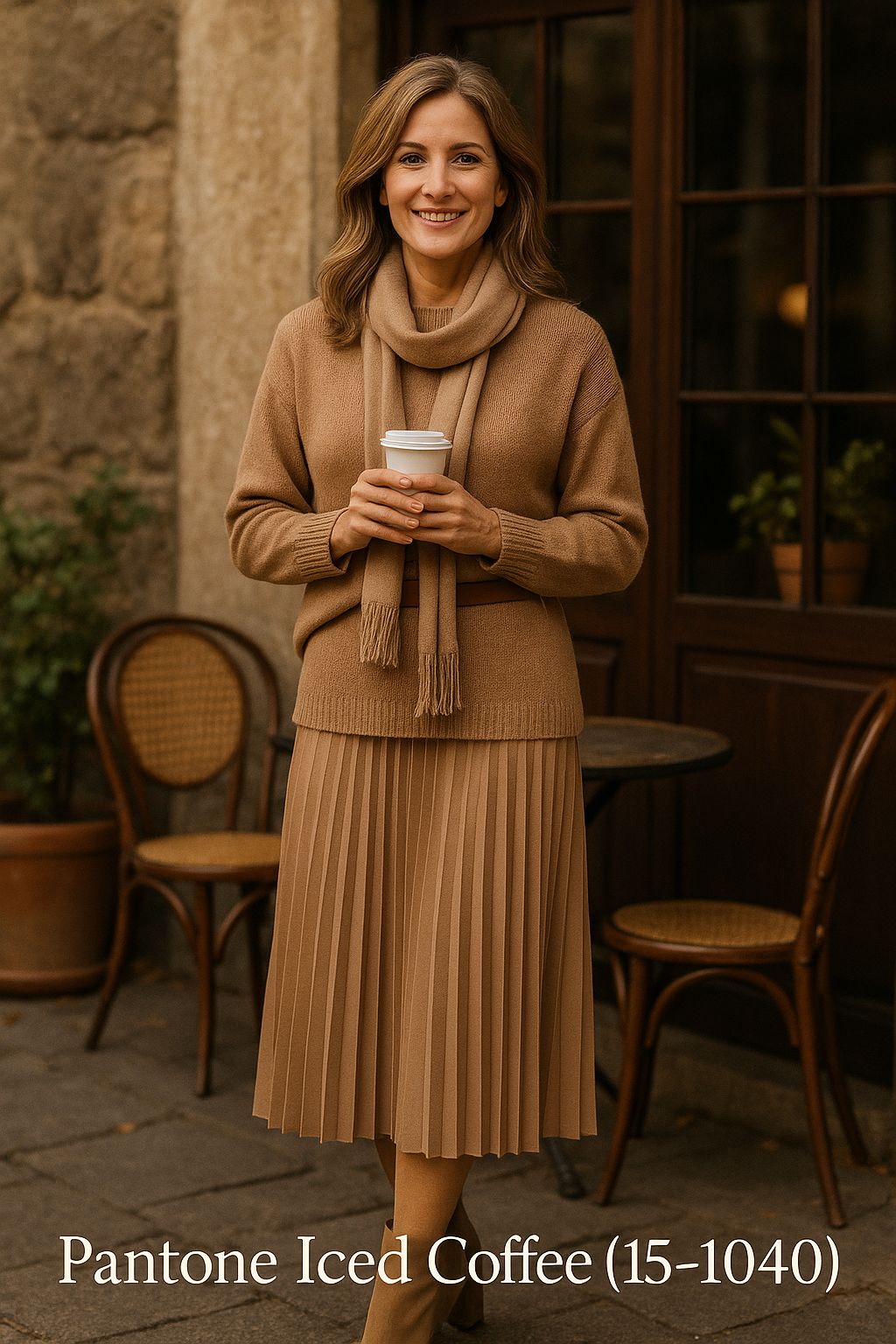 The Creamy & Mellow Neutrals—Latte, Café au Lait, Cappuccino, Camel, Tan, and Pantone Iced Coffee—are the fashion equivalent of a cashmere hug and a wink that says, Yes, I have my life together.