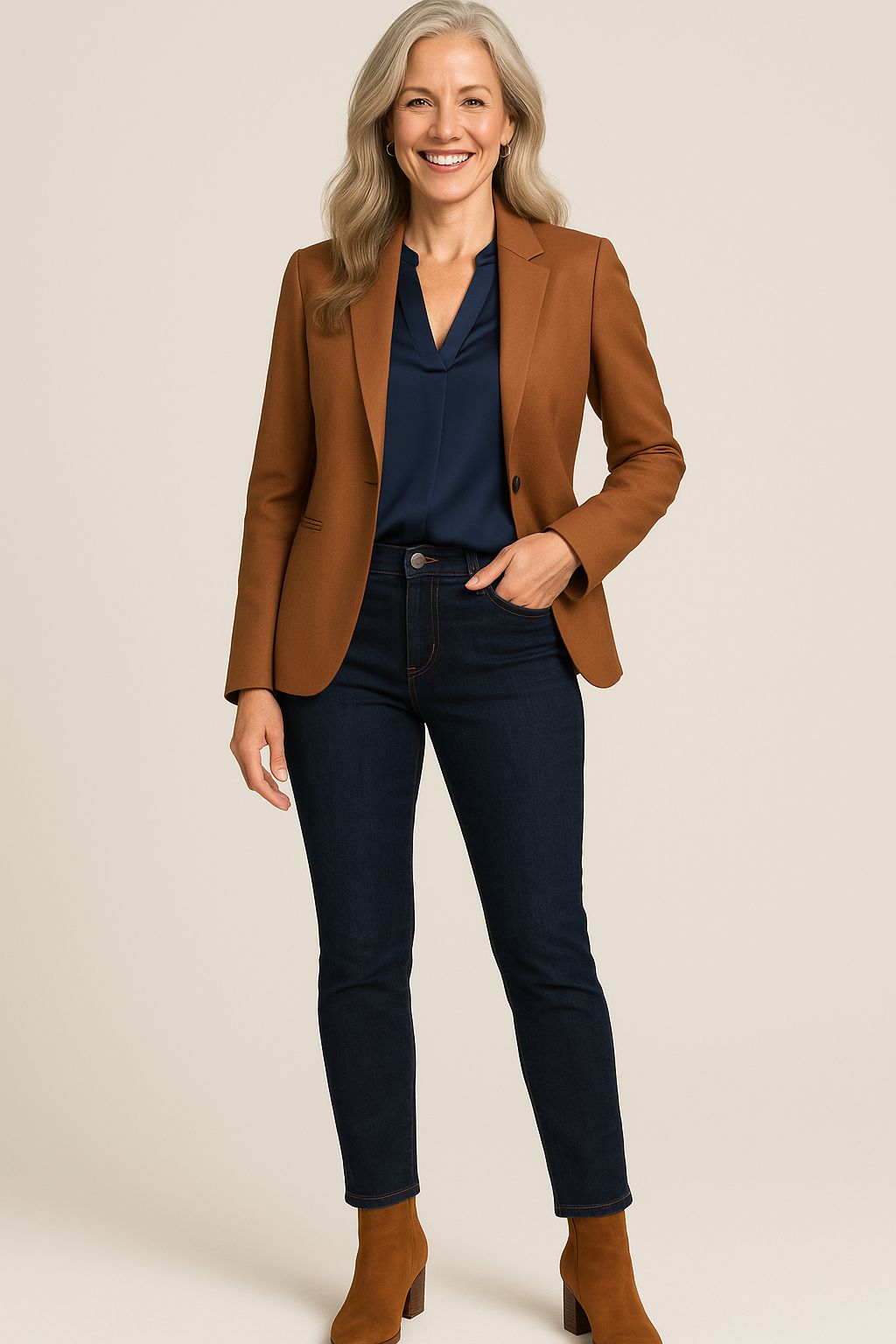 Pro tip: Tan + navy is the fall capsule hack you can repeat weekly.